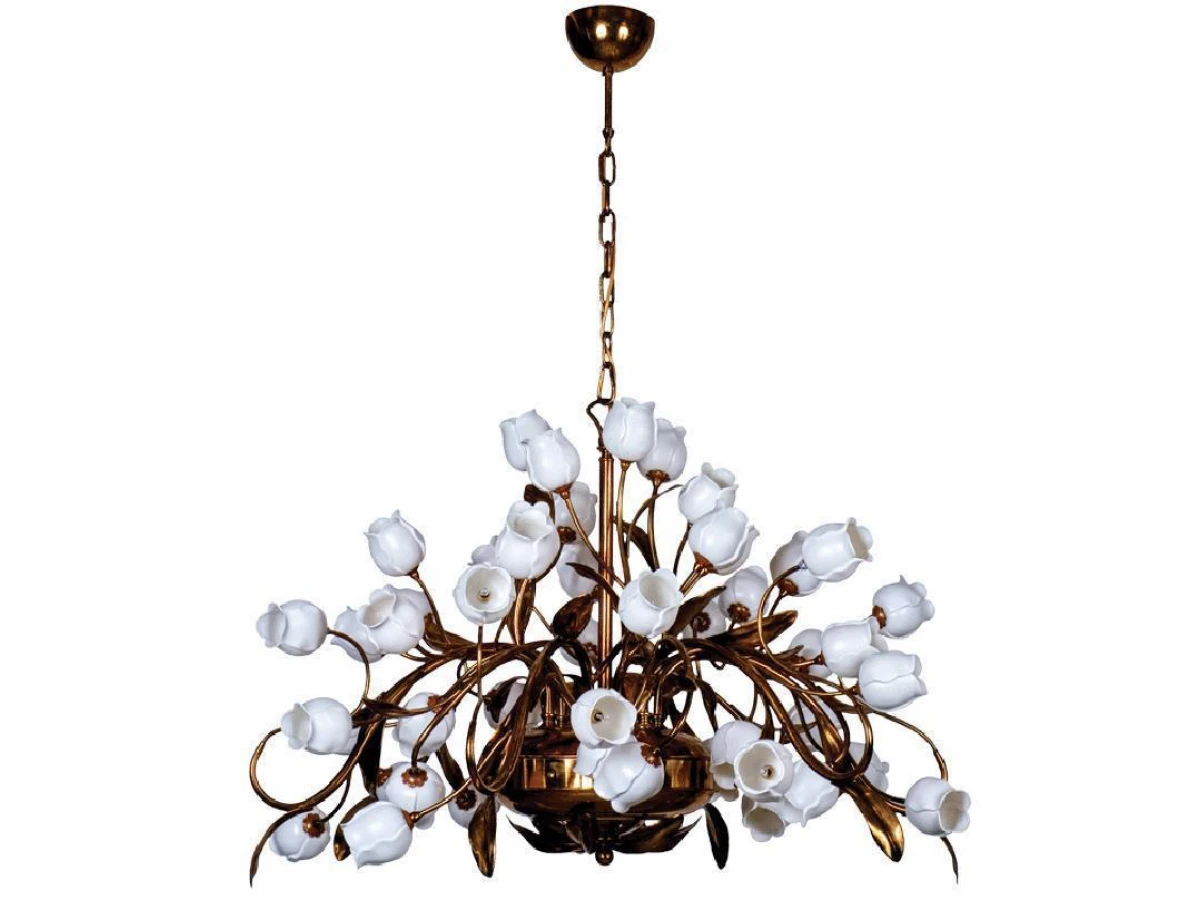 Данная модель входит в состав коллекции Иоланта и исполнена в стиле флористика. Люстра имеет высоту 1500 мм и диаметр 1000 мм. Работает при напряжении 220-240 V.
