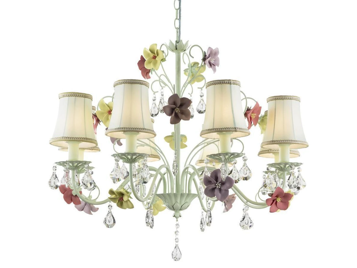 Данная модель входит в состав коллекции BEATRICE и исполнена в стиле флористика. Люстра имеет высоту 600 мм и диаметр 750 мм. Работает при напряжении 220-240 V.