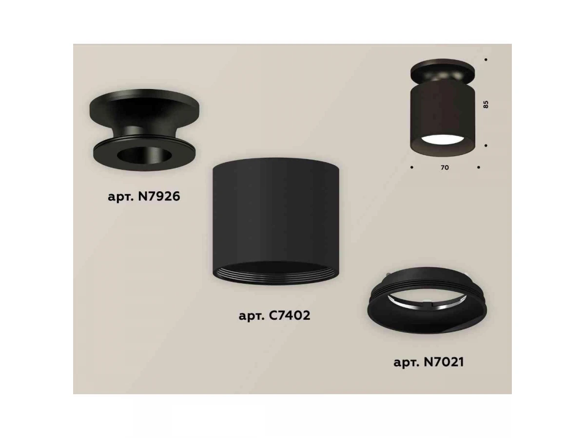 Комплект накладного светильника Ambrella light Techno Spot XS7402063 SBK/PBK черный песок/черный полированный (N7926, C7402, N7021)