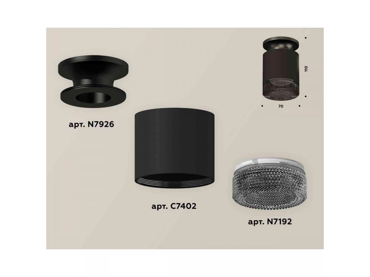 Комплект накладного светильника Ambrella light Techno Spot XS7402064 SBK/PBK/BK черный песок/черный полированный/тонированный (N7926, C7402, N7192)
