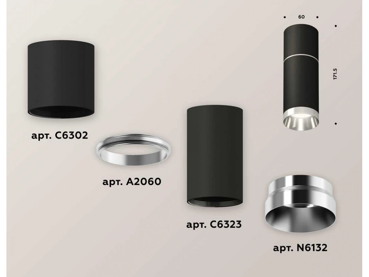 Комплект потолочного светильника Ambrella light Techno Spot XC (C6302, A2060, C6323, N6132) XS6323060