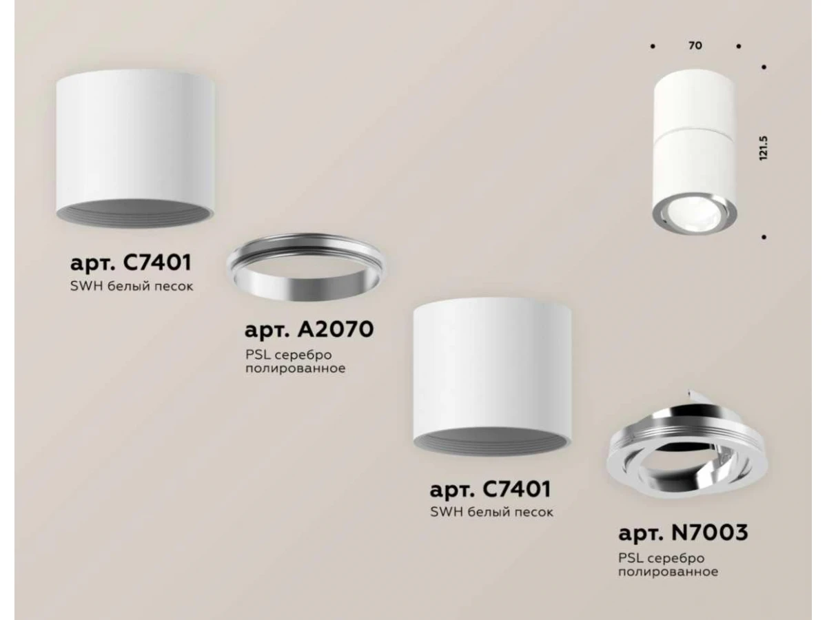 Комплект потолочного светильника Ambrella light Techno Spot XS (C7401, A2070, C7401, N7003) XS7401160 Комплект потолочного светильника Ambrella light Techno Spot XS (C7401, A2070, C7401, N7003) XS7401160