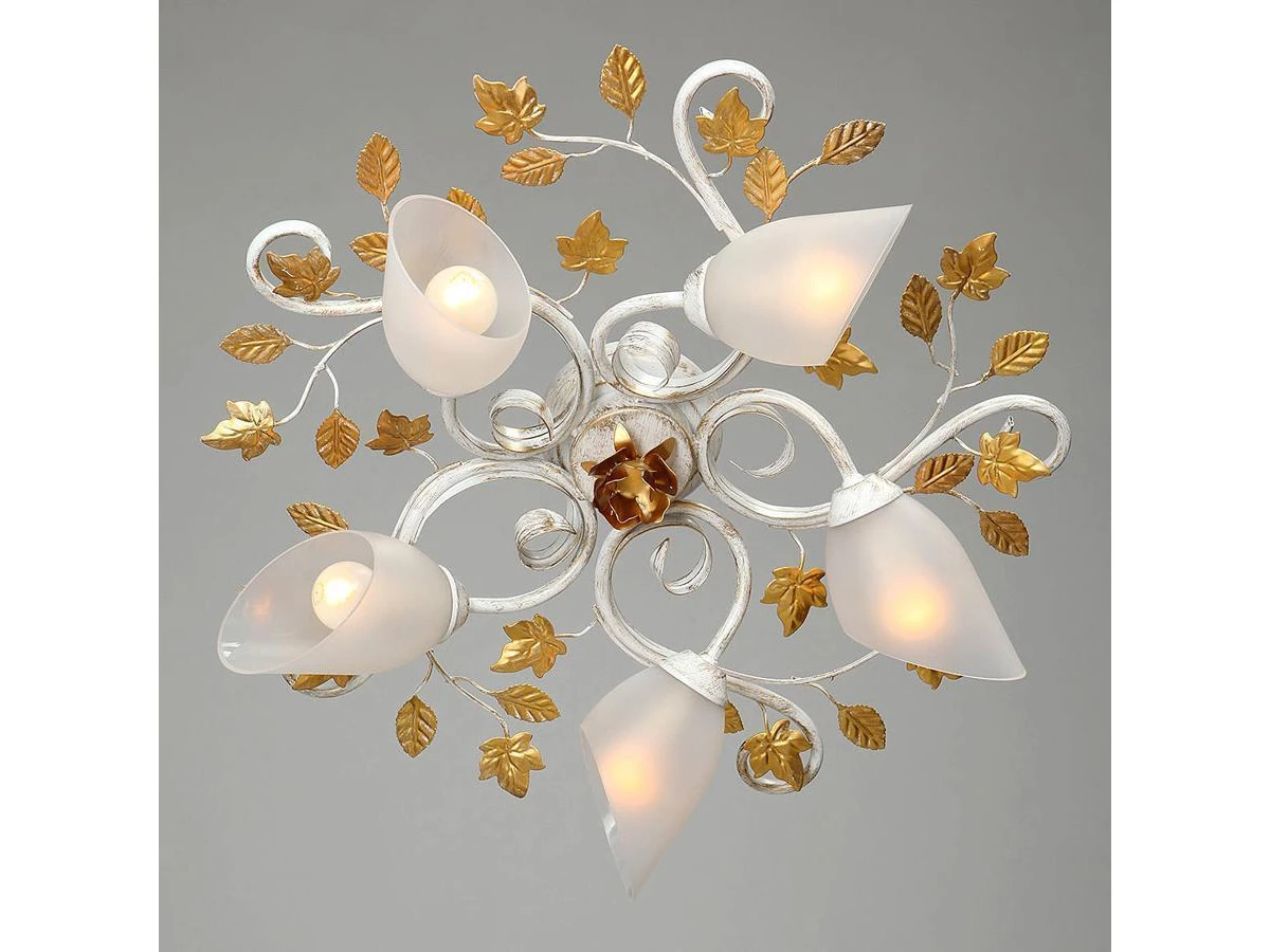 Данная модель входит в состав коллекции Серия V1733 и исполнена в стиле флористика. Люстра имеет высоту 200 мм и диаметр 550 мм. Работает при напряжении 220-240 V.