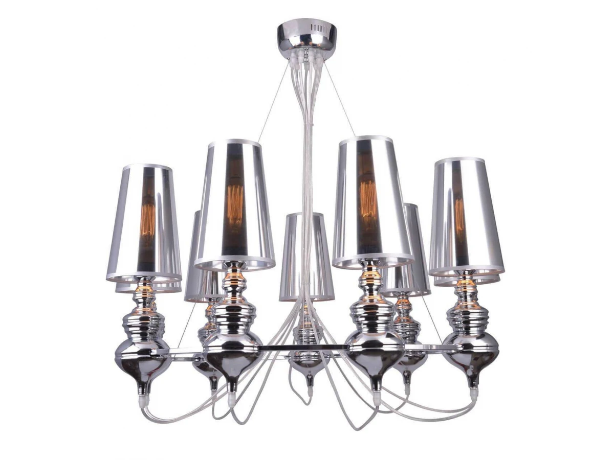 Несравненная модель A4280LM-9CC от итальянской компании Arte Lamp относится к коллекции Anna Maria и отлично подойдет для установки на потолок в гостиной, оформленной в стиле арт-деко. Подвесная люстра Arte Lamp Anna Maria A4280LM-9CC с конусными плафонами осветит помещение площадью 15 кв. м. Производитель Arte Lamp рекомендует использовать для устройства лампы накаливания с цоколем E27 и мощностью 40 W. Прибор произведен с использованием материалов: пластик и металл и может использоваться для натяжного потолка. Основным цветом товара является серый и хромовый. Торопитесь сделать заказ в интернет-магазине ВоронежСвет.