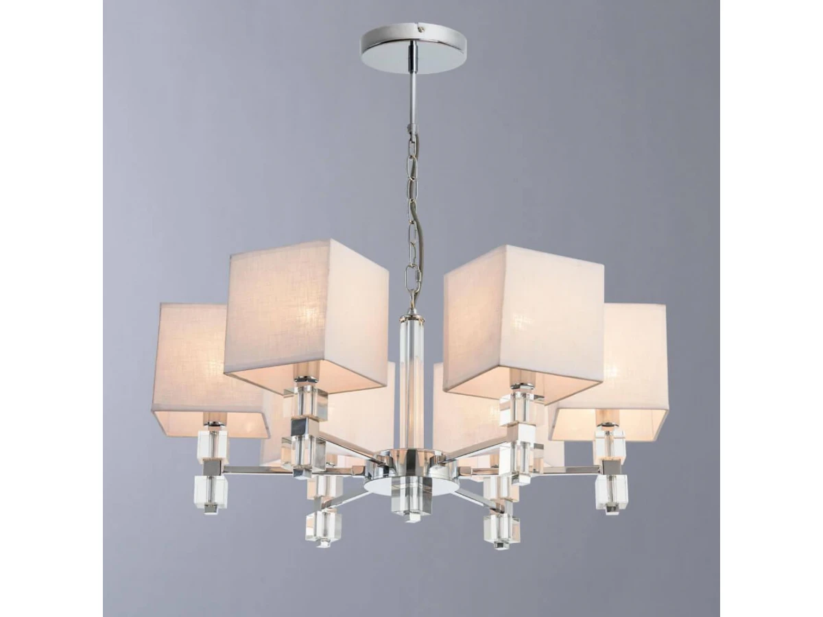 Несравненная модель A5896LM-6CC от итальянской компании Arte Lamp относится к коллекции North и отлично подойдет для установки на потолок в гостиной, оформленной в современном стиле. Подвесная люстра Arte Lamp North A5896LM-6CC с квадратными плафонами осветит помещение площадью 18 кв. м. Производитель Arte Lamp рекомендует использовать для устройства лампы накаливания с цоколем E14 и мощностью 60 W. Прибор произведен с использованием материалов: текстиль, металл и ткань и может использоваться для натяжного потолка. Основным цветом товара является белый и хромовый. Торопитесь сделать заказ в интернет-магазине ВоронежСвет.