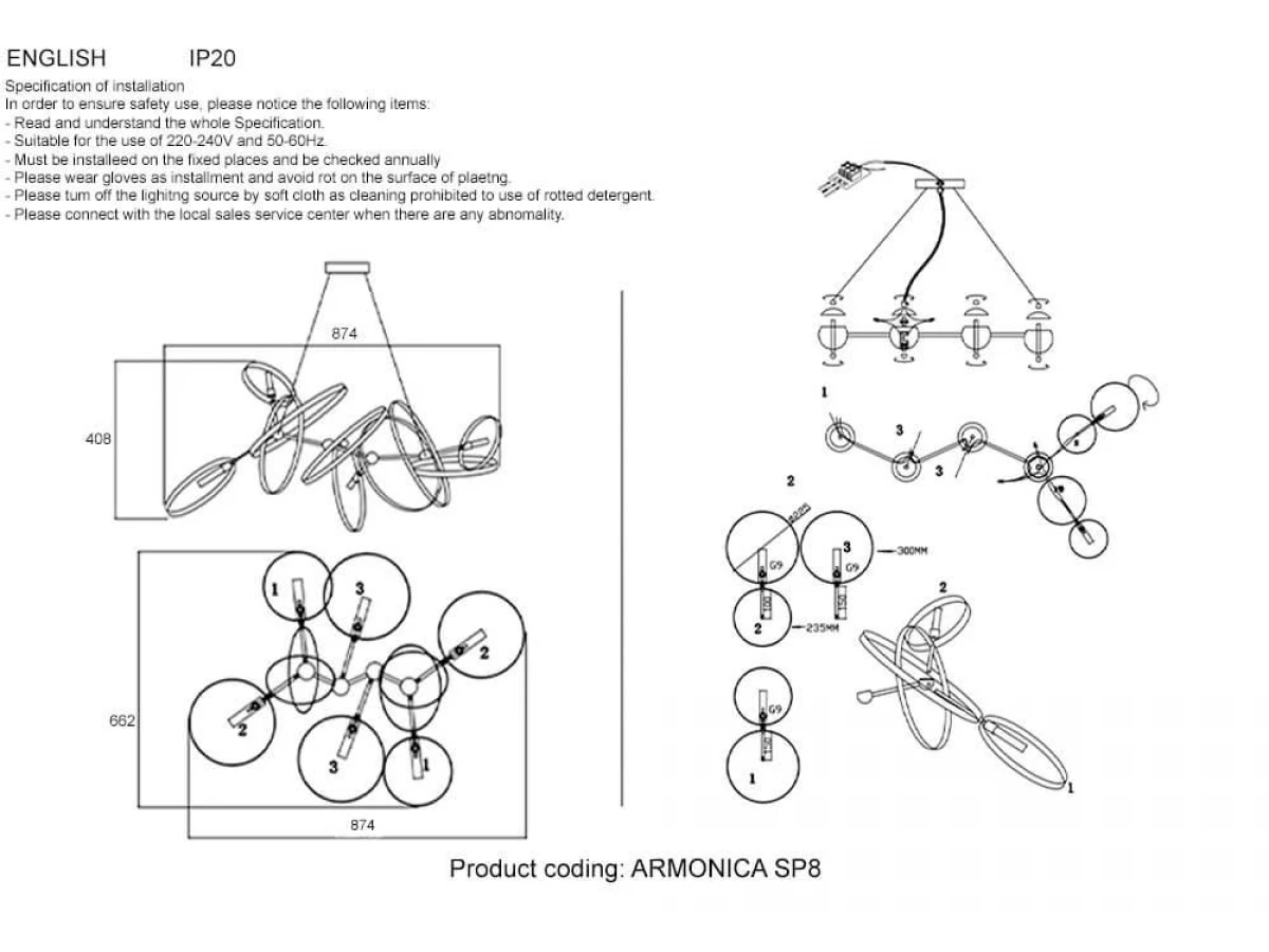 Подвесная люстра Crystal Lux Armonica SP8 Black/Brass V2