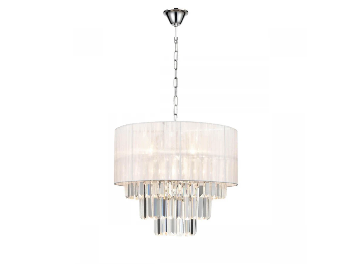 Утонченная модель VL3173P07 от итальянской компании Vele Luce относится к коллекции Fata и отлично подойдет для установки на потолок в гостиной, оформленной в стиле арт-деко. Подвесная люстра Vele Luce Fata VL3173P07 с цилиндрическими плафонами осветит помещение площадью 18.7 кв. м. Производитель Vele Luce рекомендует использовать для устройства лампы накаливания с цоколем E14 и мощностью 40 W. Прибор произведен с использованием материалов: текстиль, металл и стекло и может использоваться для натяжного потолка. Основным цветом товара является хромовый и прозрачный. Подвесная люстра VL3173P07 продается по цене 25500 руб. Торопитесь сделать заказ в интернет-магазине ВоронежСвет.