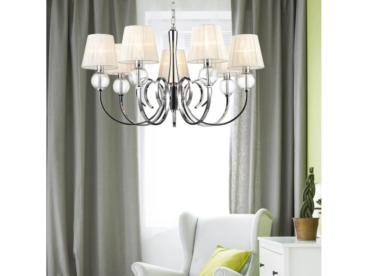 Исключительная модель VL1971L07 от итальянской компании Vele Luce относится к коллекции Percy. Подвесная люстра Vele Luce Percy VL1971L07 с конусными плафонами осветит помещение площадью 18.7 кв. м. Производитель Vele Luce рекомендует использовать для устройства лампы накаливания с цоколем E14 и мощностью 40 W. Прибор произведен с использованием материалов: текстиль, металл и ткань. Основным цветом товара является белый и хромовый. Торопитесь сделать заказ в интернет-магазине ВоронежСвет.