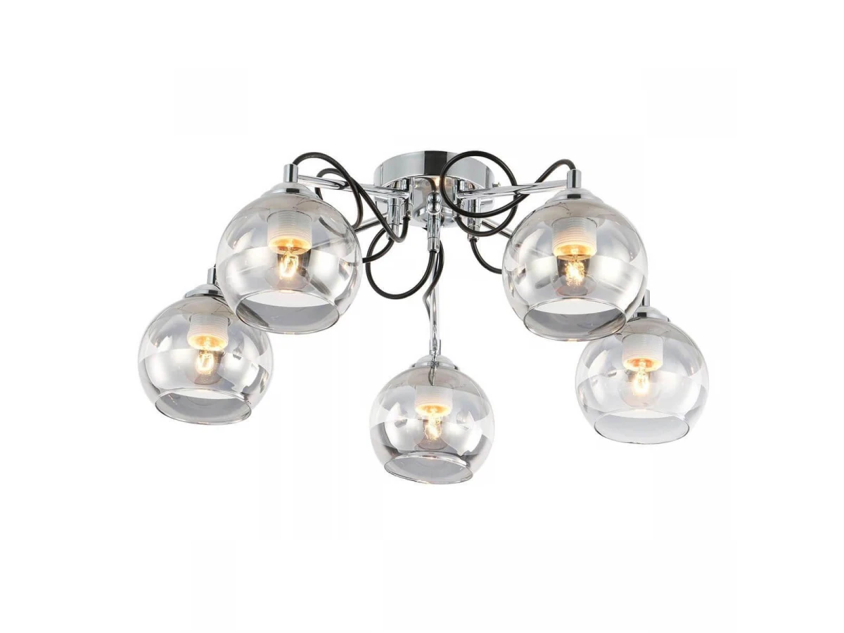 Великолепная модель 1179/5P от великобританской компании Escada относится к коллекции Riley и отлично подойдет для установки на низкий потолок кухни, оформленной в стиле хай-тек. Потолочная люстра Escada Riley 1179/5P с плафонами в виде шаров осветит помещение площадью 18 кв. м. Производитель Escada рекомендует использовать для устройства лампы накаливания с цоколем E27 и мощностью 60 W. Прибор произведен с использованием материалов: стекло и металл и может использоваться для натяжного потолка. Основным цветом товара является зеркальный, хромовый и дымчатый. Потолочная люстра 1179/5P продается по цене 5720 руб. Торопитесь сделать заказ в интернет-магазине ВоронежСвет.