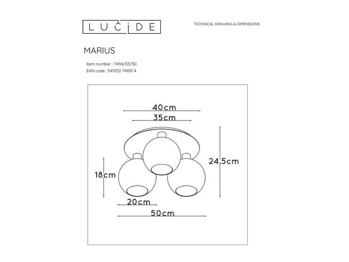 Потолочная люстра Lucide Marius 74114/03/30