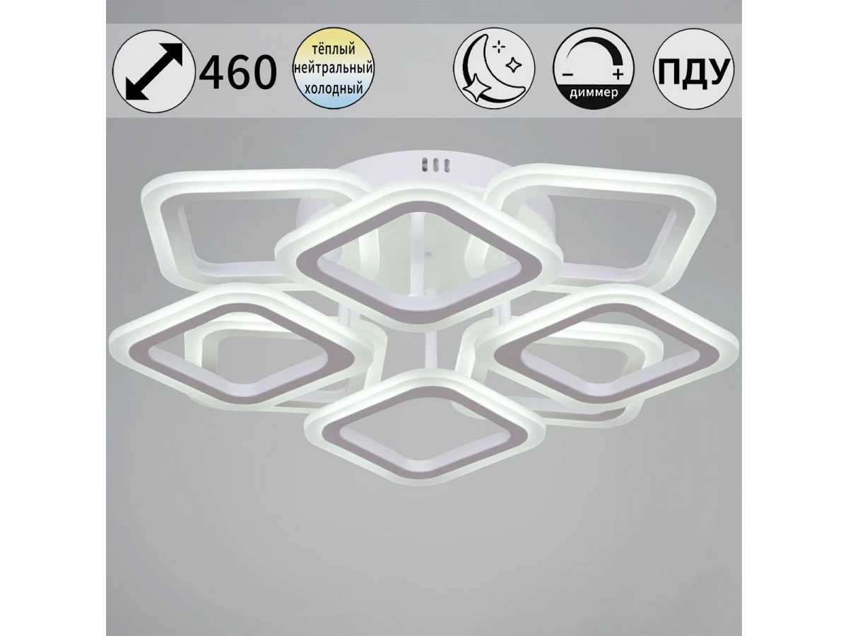 Исключительная модель 05104-0.3-4+4 WH от итальянской компании Reluce относится к коллекции 05104. Потолочная светодиодная люстра Reluce 05104-0.3-4+4 WH с ромбическими плафонами осветит помещение площадью 20 кв. м. холодным светом. Осветительный элемент встроен в конструкцию и не требует приобретения дополнительных лампочек. Прибор произведен с использованием материалов: акрил и металл и может использоваться для натяжного потолка. В комплект поставки входит пульт дистанционного управления. Основным цветом товара является белый. Торопитесь сделать заказ в интернет-магазине ВоронежСвет.
