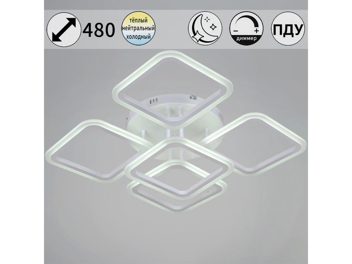 Неповторимая модель 05105-0.3-4+1 WH от итальянской компании Reluce относится к коллекции 05105. Потолочная светодиодная люстра Reluce 05105-0.3-4+1 WH с квадратными плафонами осветит помещение площадью 20 кв. м. холодным светом. Осветительный элемент встроен в конструкцию и не требует приобретения дополнительных лампочек. Прибор произведен с использованием материалов: акрил и металл и может использоваться для натяжного потолка. В комплект поставки входит пульт дистанционного управления. Основным цветом товара является белый. Торопитесь сделать заказ в интернет-магазине ВоронежСвет.