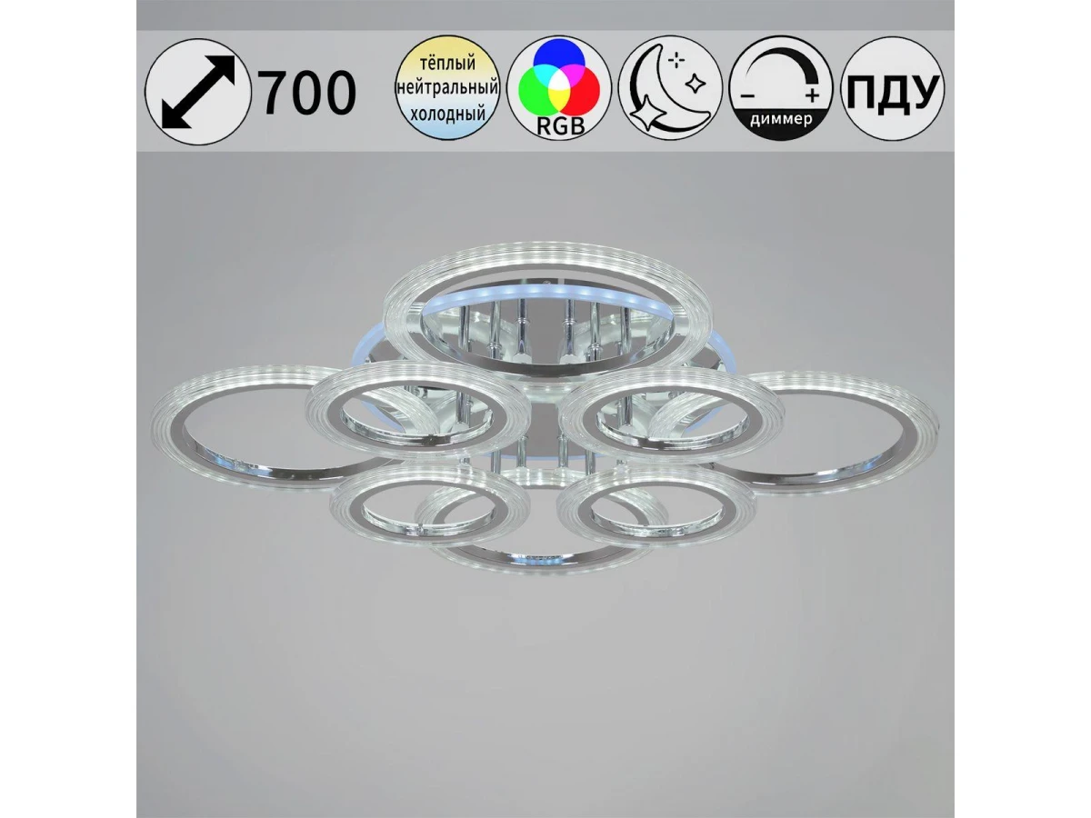 Потолочная светодиодная люстра Reluce 09812-3.3-4+4D CR (RGB)