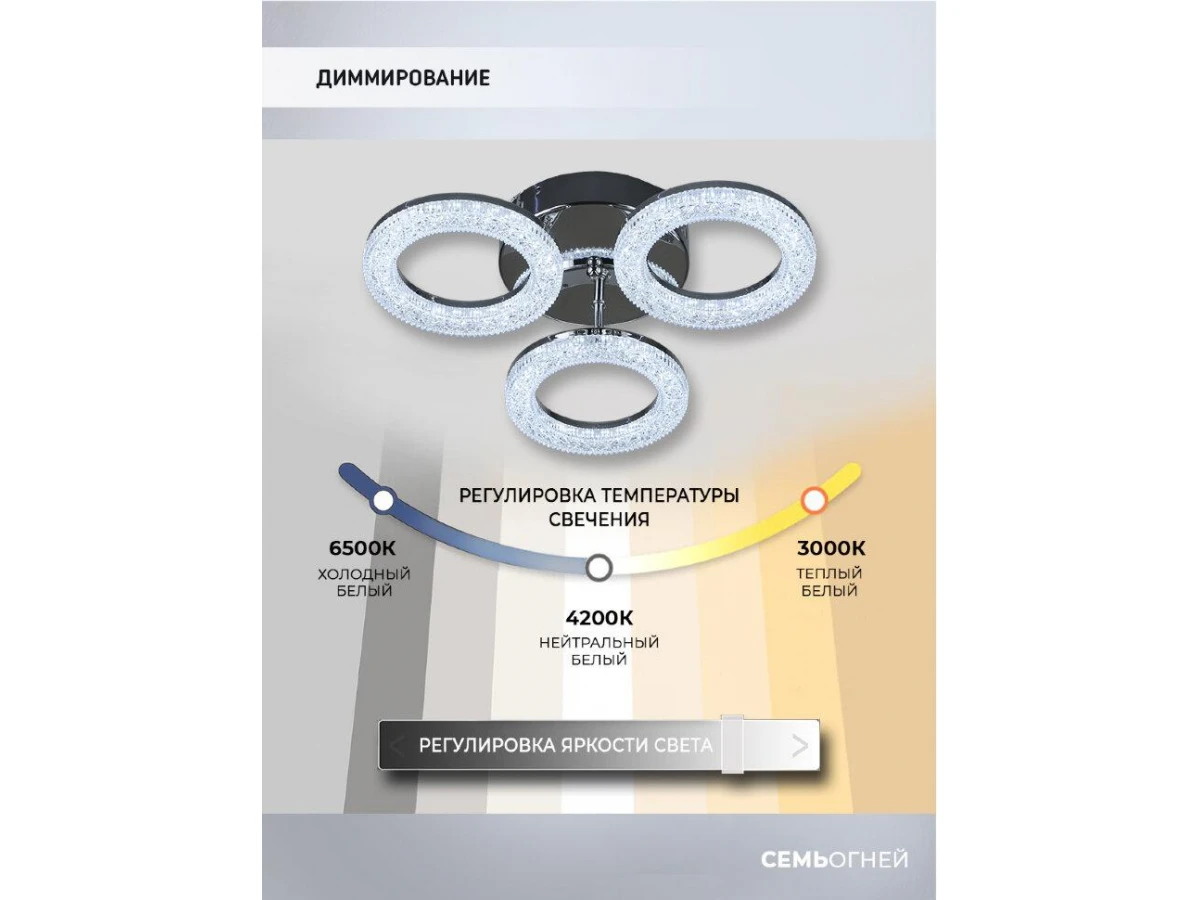 Оригинальная модель WD7508/3C-CR от российской компании Seven Fires относится к коллекции Kaffi и отлично подойдет для установки на низкий потолок кухни, оформленной в стиле хай-тек. Потолочная светодиодная люстра Seven Fires Kaffi WD7508/3C-CR с круглыми плафонами осветит помещение площадью 15 кв. м. холодным светом. Осветительный элемент встроен в конструкцию и не требует приобретения дополнительных лампочек. Прибор произведен с использованием материалов: акрил и металл и может использоваться для натяжного потолка. В комплект поставки входит пульт дистанционного управления. Основным цветом товара является хромовый и серебристо-стальной. Торопитесь сделать заказ в интернет-магазине ВоронежСвет.
