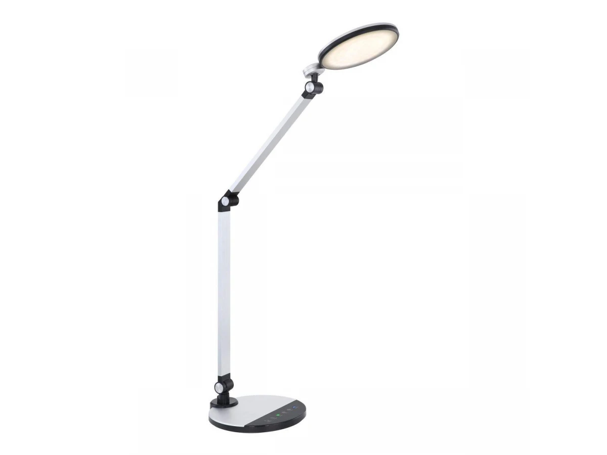 Поразительная модель 58428S со встроенным выключателем от австрийской компании Globo относится к коллекции Konsti и отлично подойдет для установки на стол офиса, оформленном в современном стиле. Осветительный элемент встроен в конструкцию и не требует приобретения дополнительных лампочек. Прибор произведен с использованием материалов: пластик и алюминий. Основным цветом товара является серебряный, черный и опаловый. Настольная лампа 58428S с диммером продается по цене 16800 руб. Торопитесь сделать заказ в интернет-магазине ВоронежСвет.
