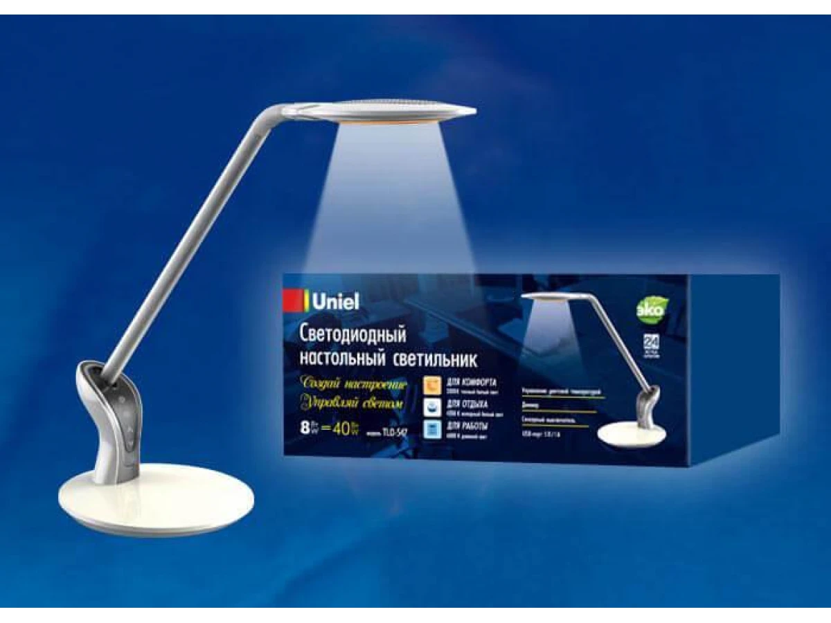 Настольная лампа (UL-00002342) Uniel TLD-547 White/LED/400Lm/3300-6000K/Dimmer