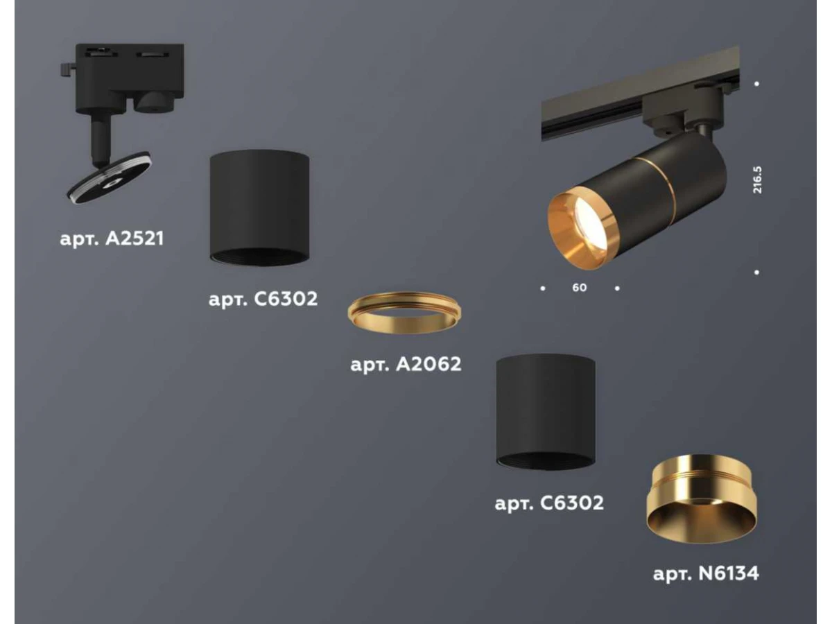 Комплект трекового светильника Ambrella light Track System XT (A2521, C6302, A2062, C6302, N6134) XT6302021