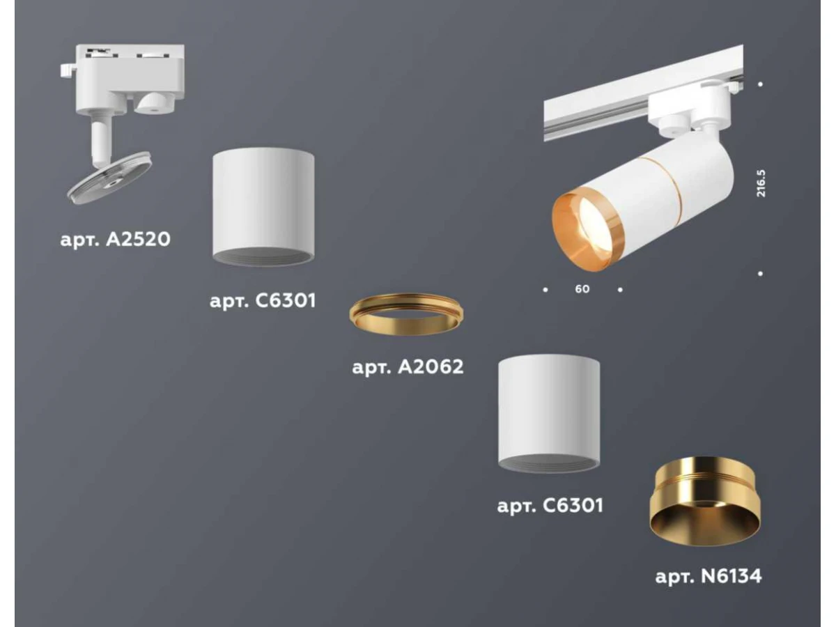 Комплект трекового светильника Ambrella light Track System XT (A2520,C6301,A2062,C6301,N6134) XT6301021