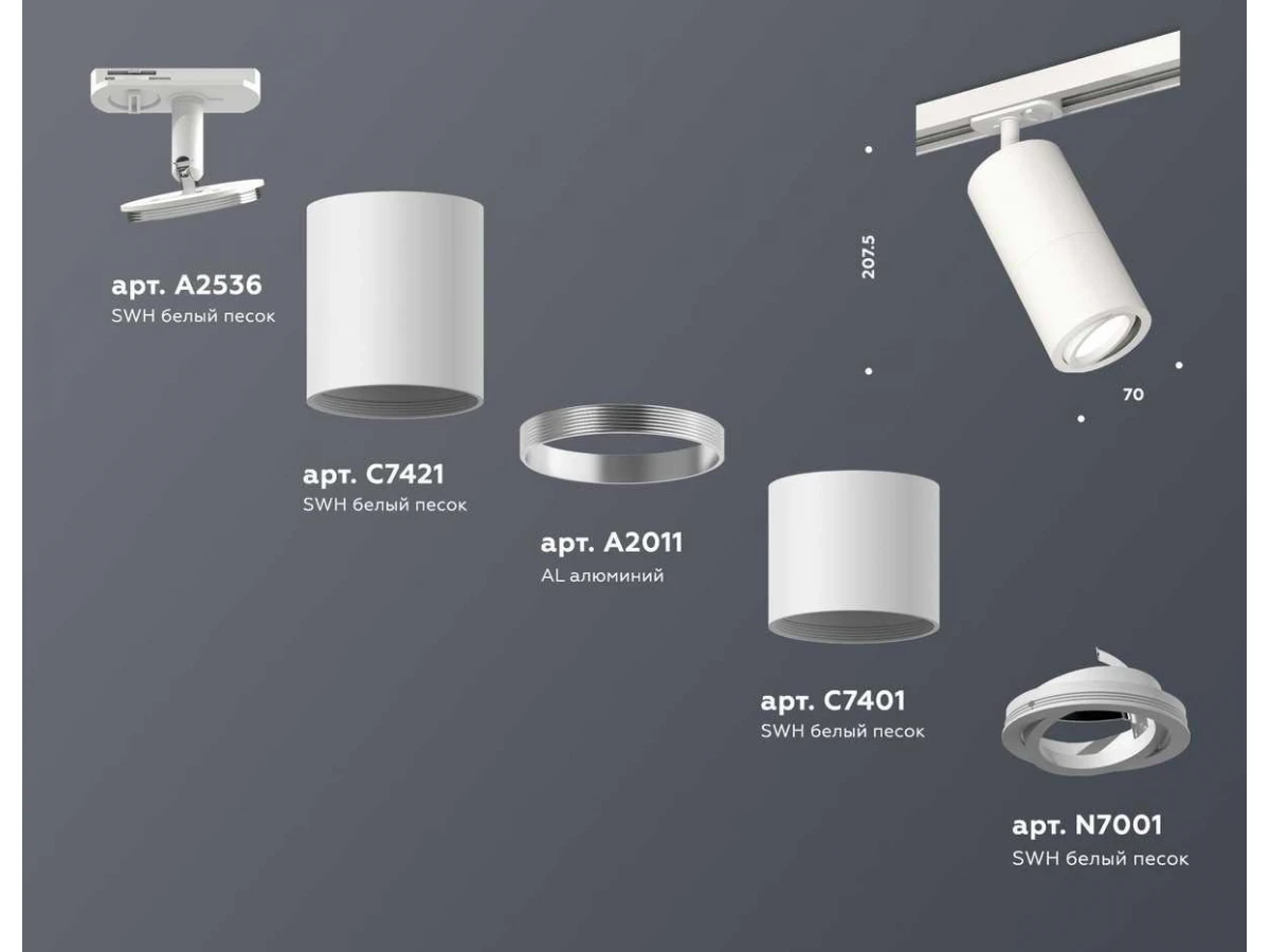 Комплект трекового светильника Ambrella light Track System XT (A2536, C7421, A2011, C7401, N7001) XT7401080