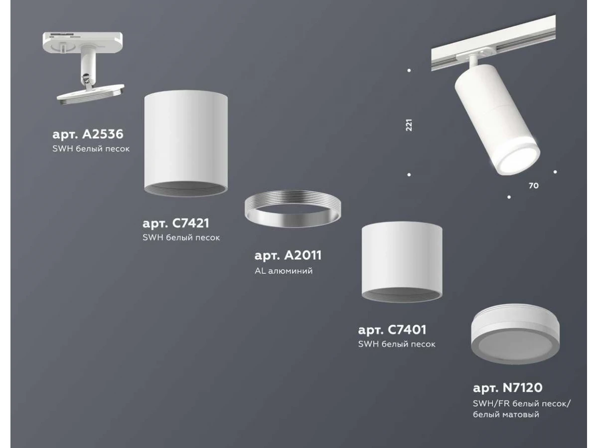 Комплект трекового светильника Ambrella light Track System XT (A2536, C7421, A2011, C7401, N7120) XT7401090
