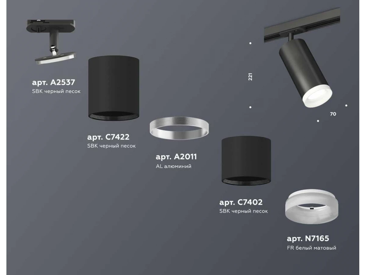 Комплект трекового светильника Ambrella light Track System XT (A2537, C7422, A2011, C7402, N7165) XT7402111