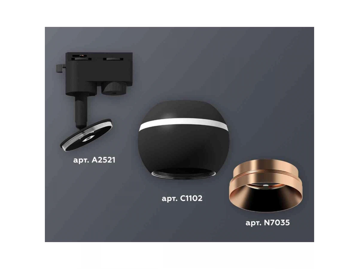 Комплект трекового светильника Ambrella light Track System XT1102006 SBK/PPG черный песок/золото розовое полированное (A2521, C1102, N7035)