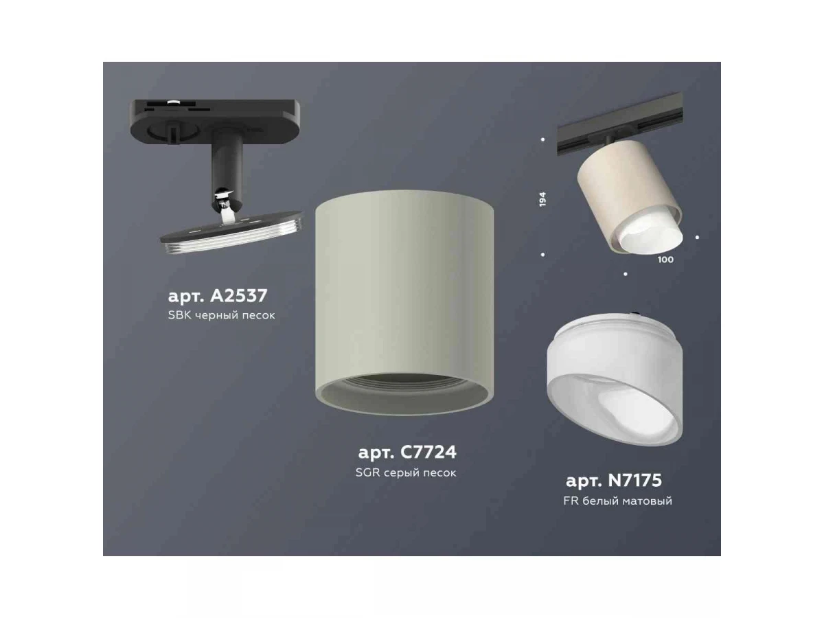 Комплект трекового светильника Ambrella light Track System XT7724001 SGR/FR/SBK серый песок/белый матовый/черный песок (A2537, C7724, N7175)