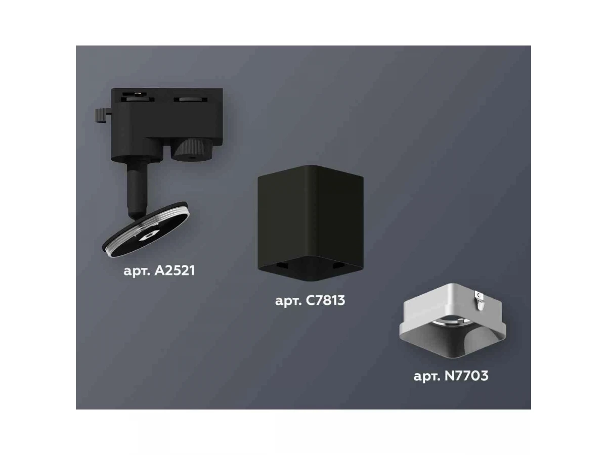Комплект трекового светильника Ambrella light Track System XT7813002 SBK/SSL черный песок/серебро песок (A2521, C7813, N7703)