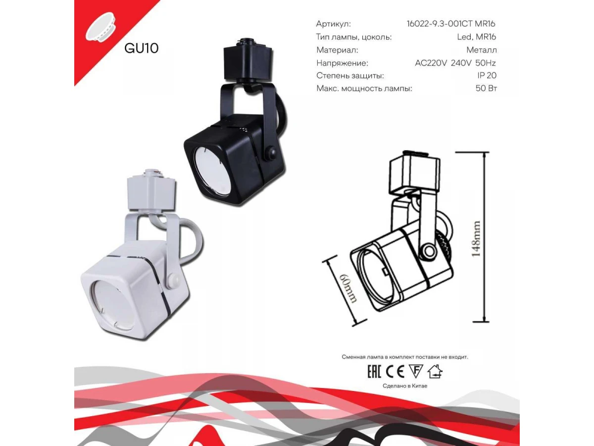 Трековый светильник Reluce Technical 16022-9.3-001CT MR16 BK