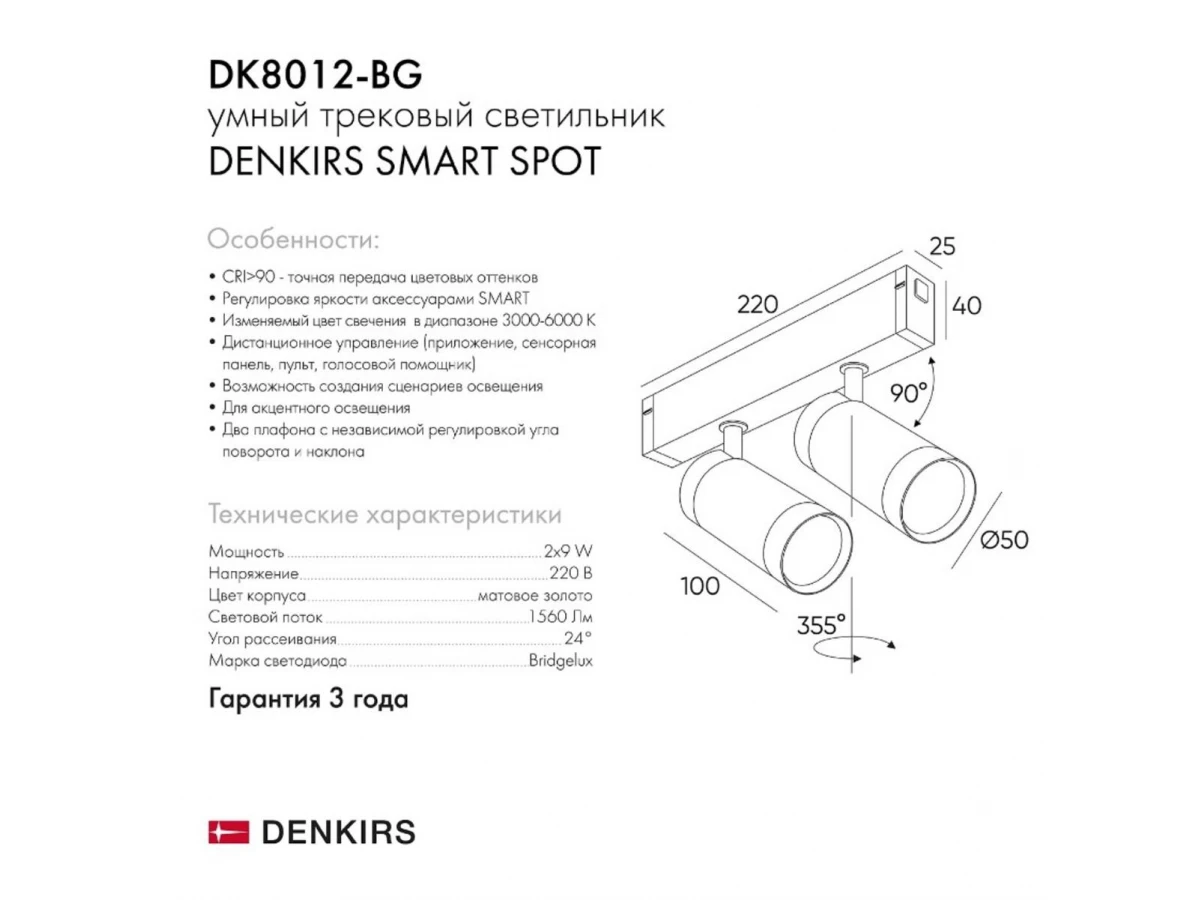 Трековый светодиодный светильник Denkirs Smart Spot DK8012-BG