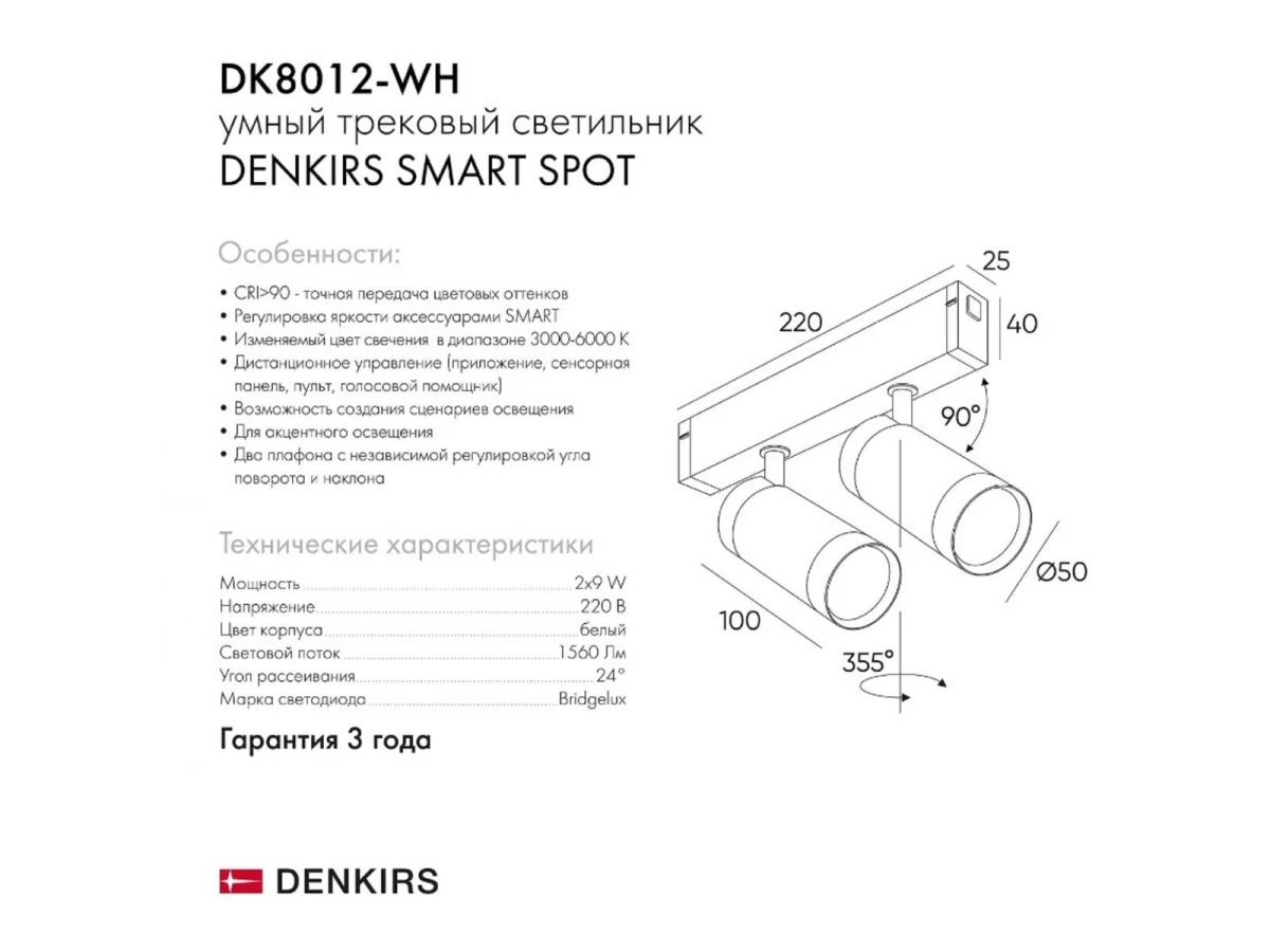 Трековый светодиодный светильник Denkirs Smart Spot DK8012-WH