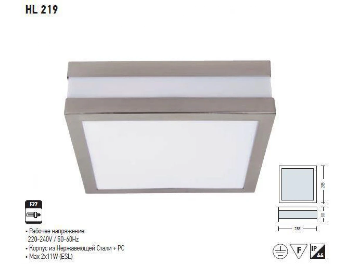 Садово-парковый светильник с артикулом HL219 имеет форму квадрата. Компания HOROS ELECTRIC недавно запустило их в продажу, но они уже пользуются большой популярностью. Цены на светильники от этого производителя умеренные, поэтому купить их может любой человек. Данный светильник имеет потребляемую мощность – 2х13Вт. Его высота совсем небольшая – 8см., а 28,5 мм – это его ширина.