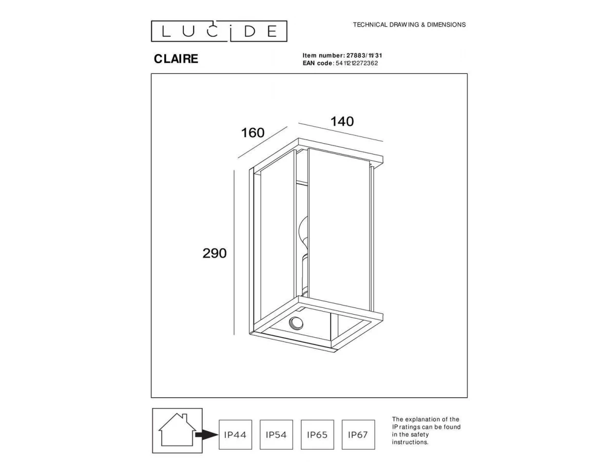 Уличный настенный светильник Lucide Claire 27883/11/31