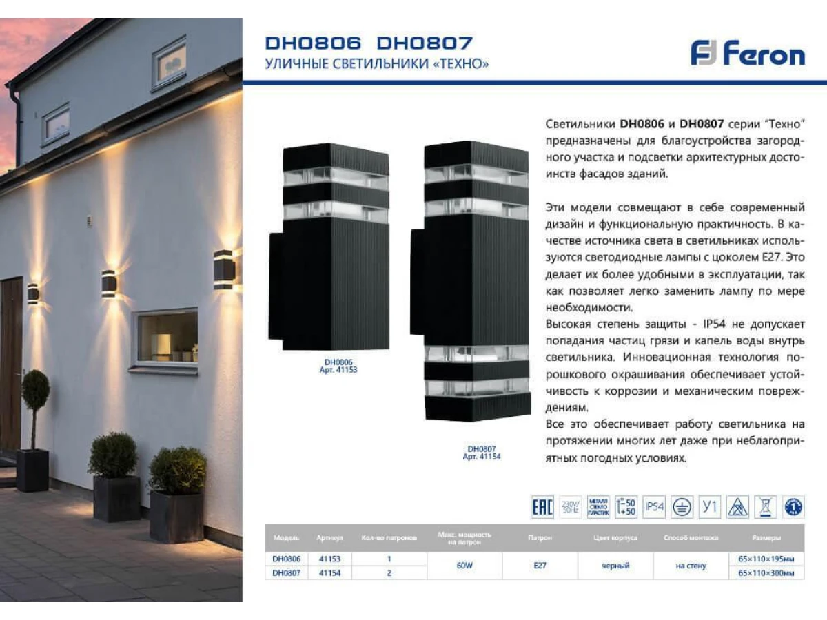 Уличный настенный светильник Feron Техно DH0807 41154