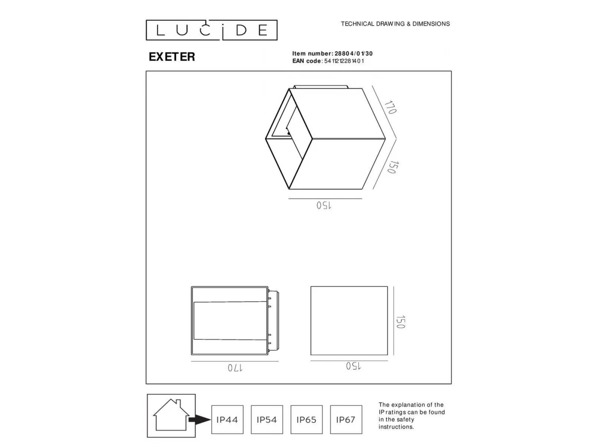 Уличный настенный светильник Lucide Exeter 28804/01/30