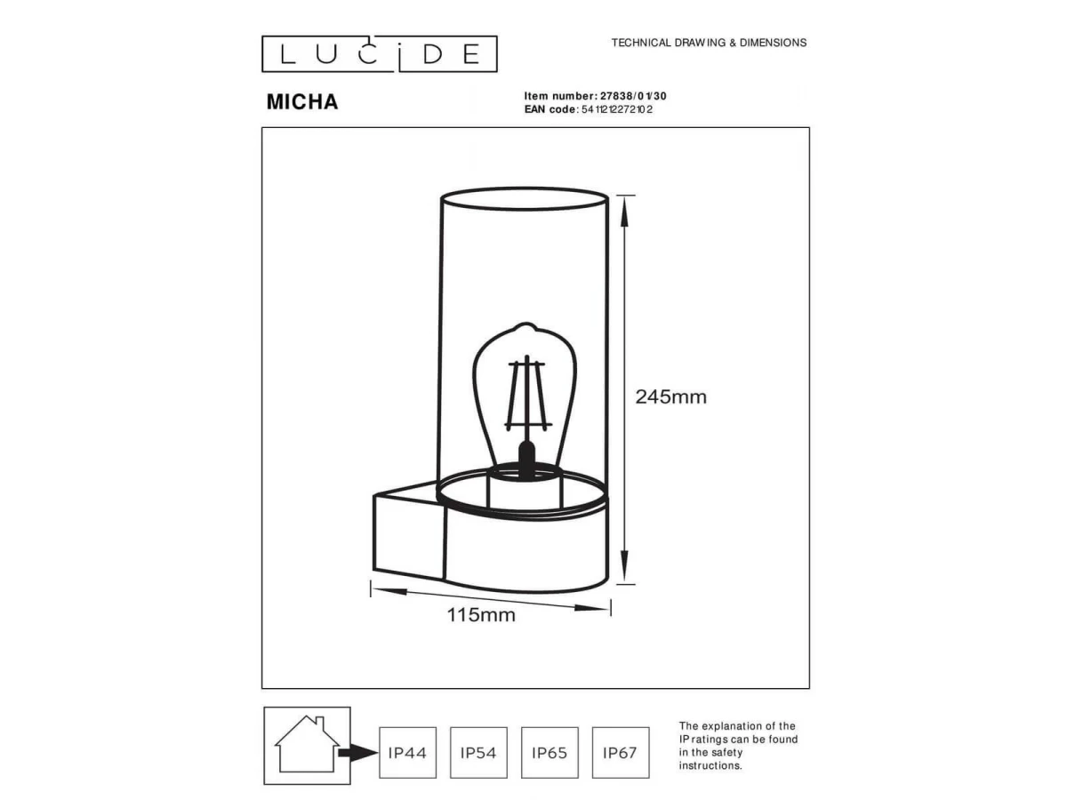 Уличный настенный светильник Lucide Micha 27838/01/30