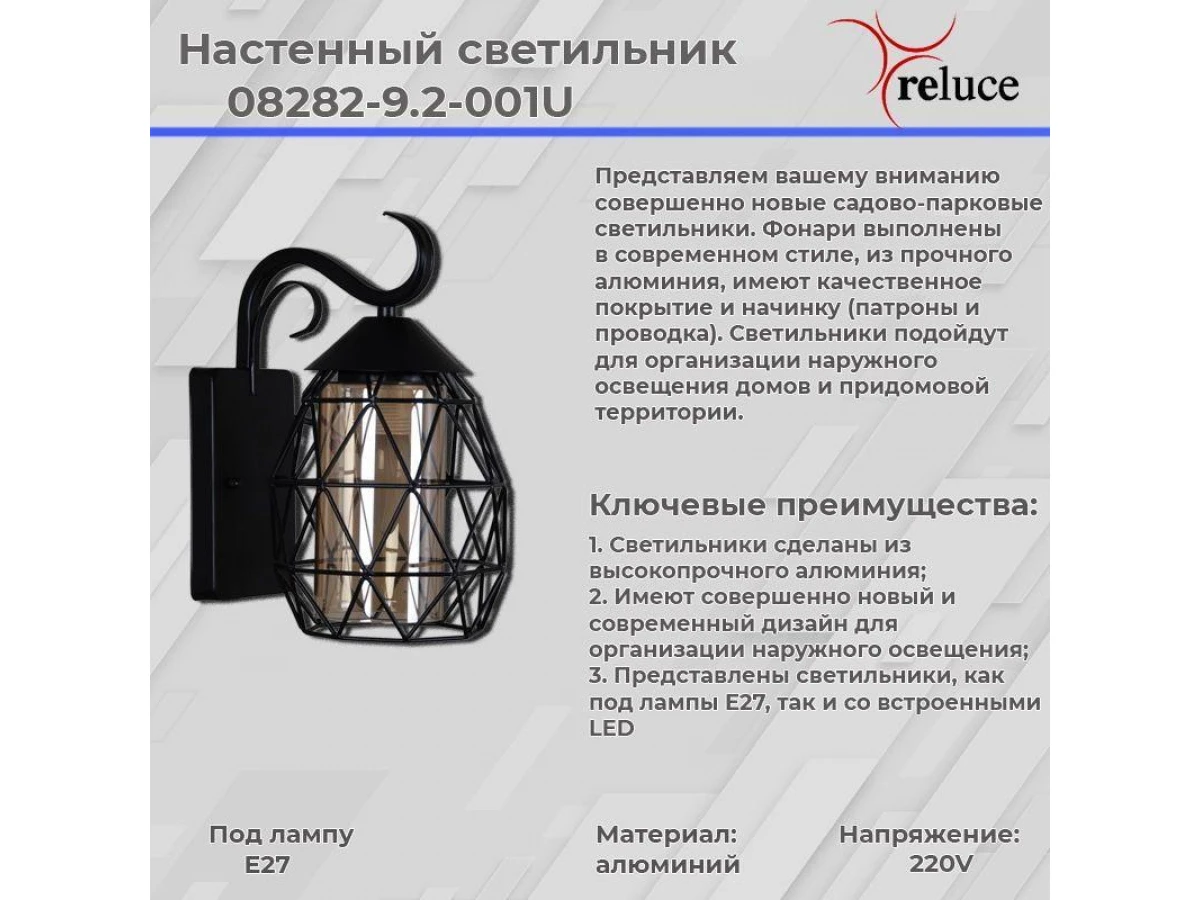 Уличный настенный светильник Reluce 08282-9.2-001U BK