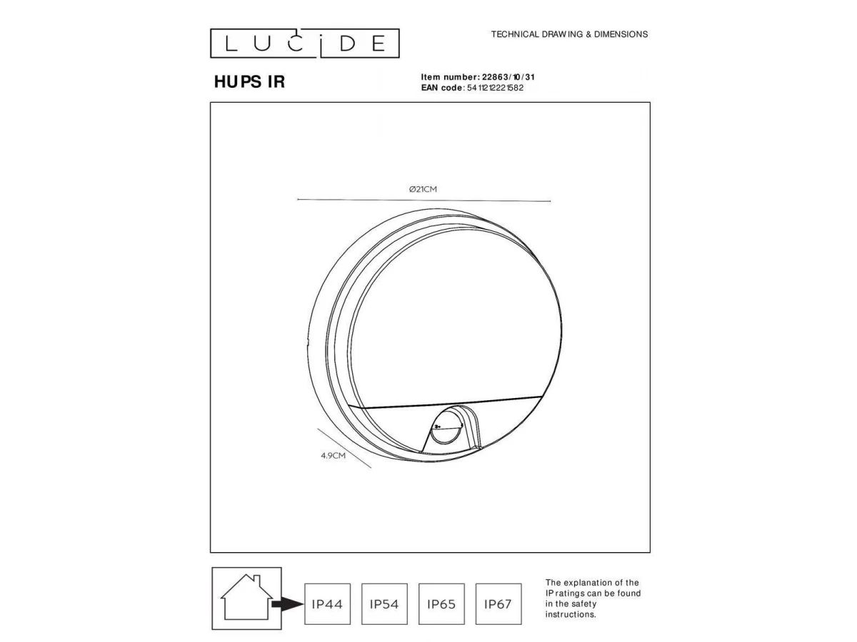 Уличный настенный светодиодный светильник Lucide Hups Ir 22863/10/31