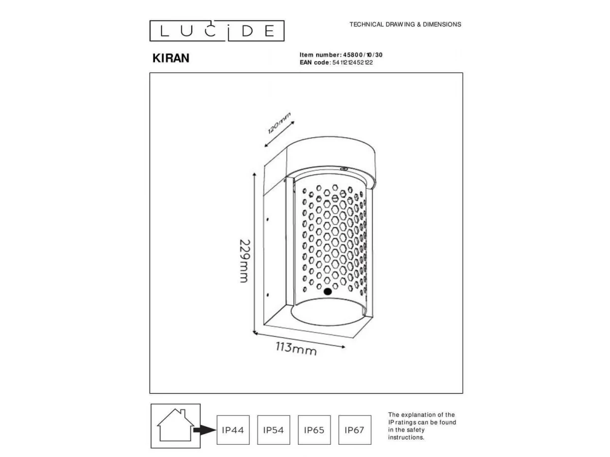 Уличный настенный светодиодный светильник Lucide Kiran 45800/10/30