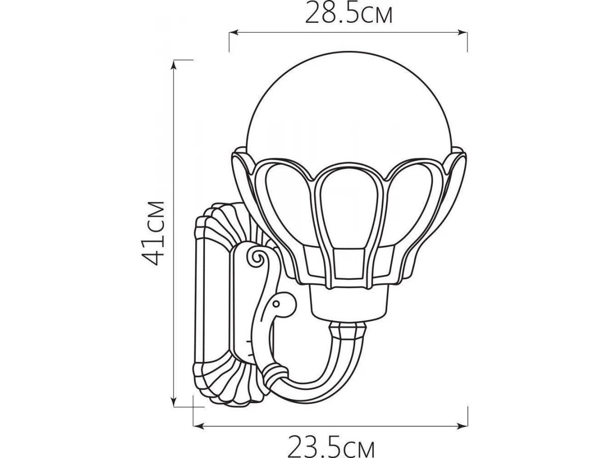 Светильник садово-парковый, серии «Верона» (НБУ) FERON PL5051 1*100W, E27, 230V, IP44, цвет черное золото, шар, на стену вверх, 285*325*410мм