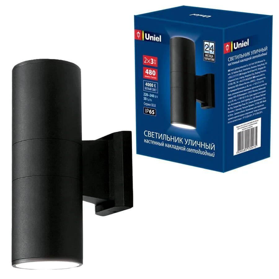 Уличный настенный светодиодный светильник (UL-00006802) Uniel ULU-S22B-2X3W/4000K IP65 Black