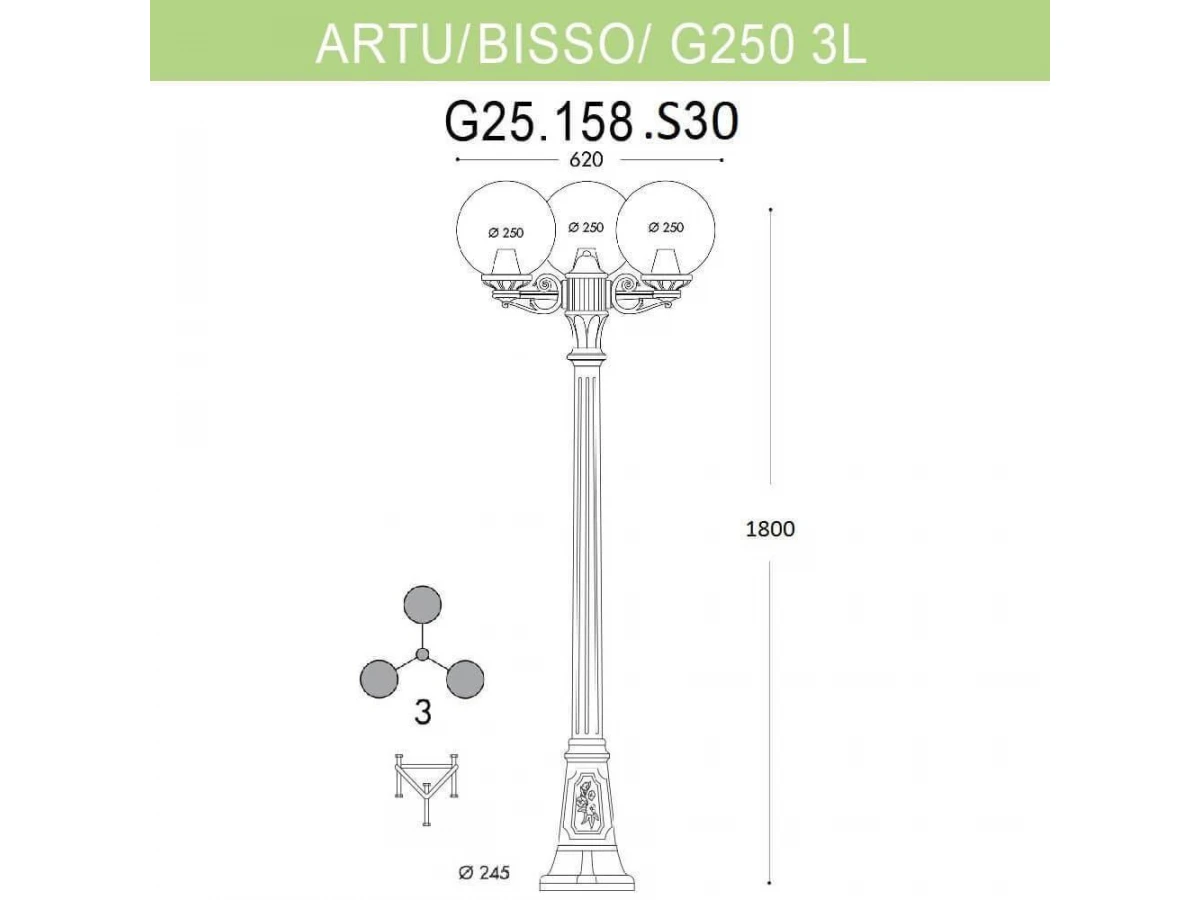 Уличный фонарь Fumagalli Artu Bisso/G250 3L G25.158.S30.BXE27