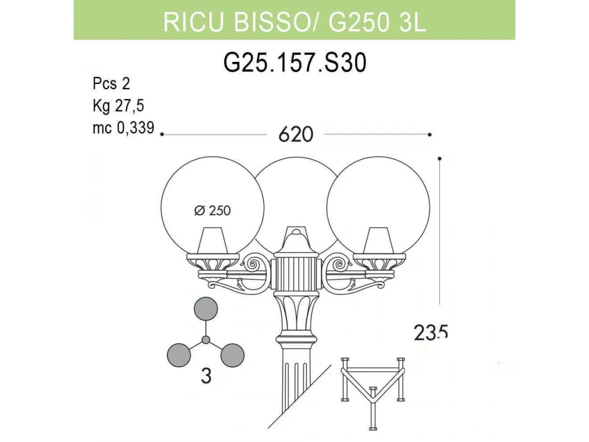 Уличный фонарь Fumagalli Ricu Bisso/G250 3L G25.157.S30.BXE27