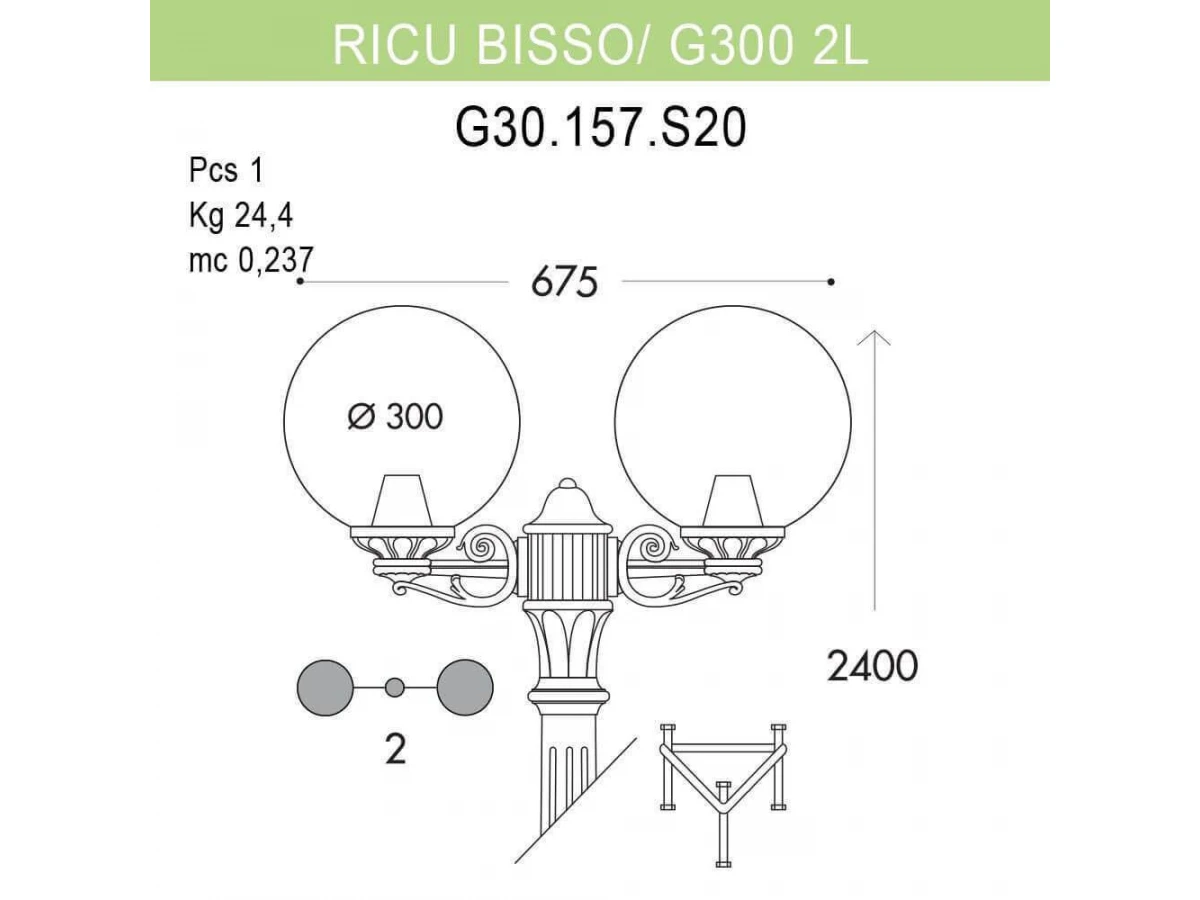 Уличный фонарь Fumagalli Ricu Bisso/G300 2L G30.157.S20.BZE27