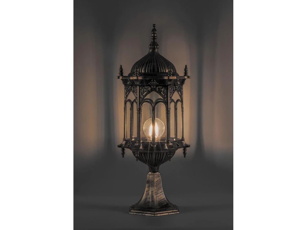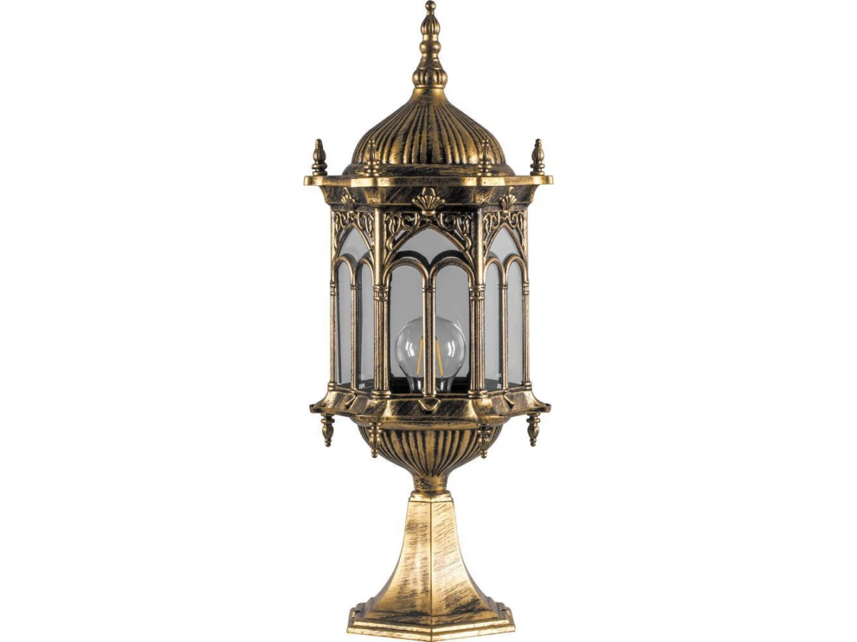 Светильник садово-парковый, серии «Багдад» (НТУ) FERON PL115 1*60W, E27, 230V, IP44, цвет черное золото, 6-ти гранник, на постамент, 185*205*520мм