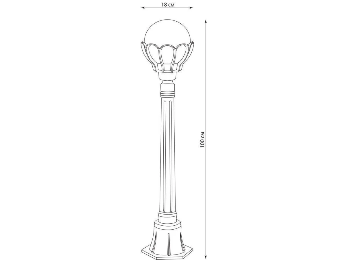 Светильник садово-парковый, FERON PL5046 60W, E27, 230V, IP44, цвет черное золото, Шар Верона, столб средний, 230*230*1020мм
