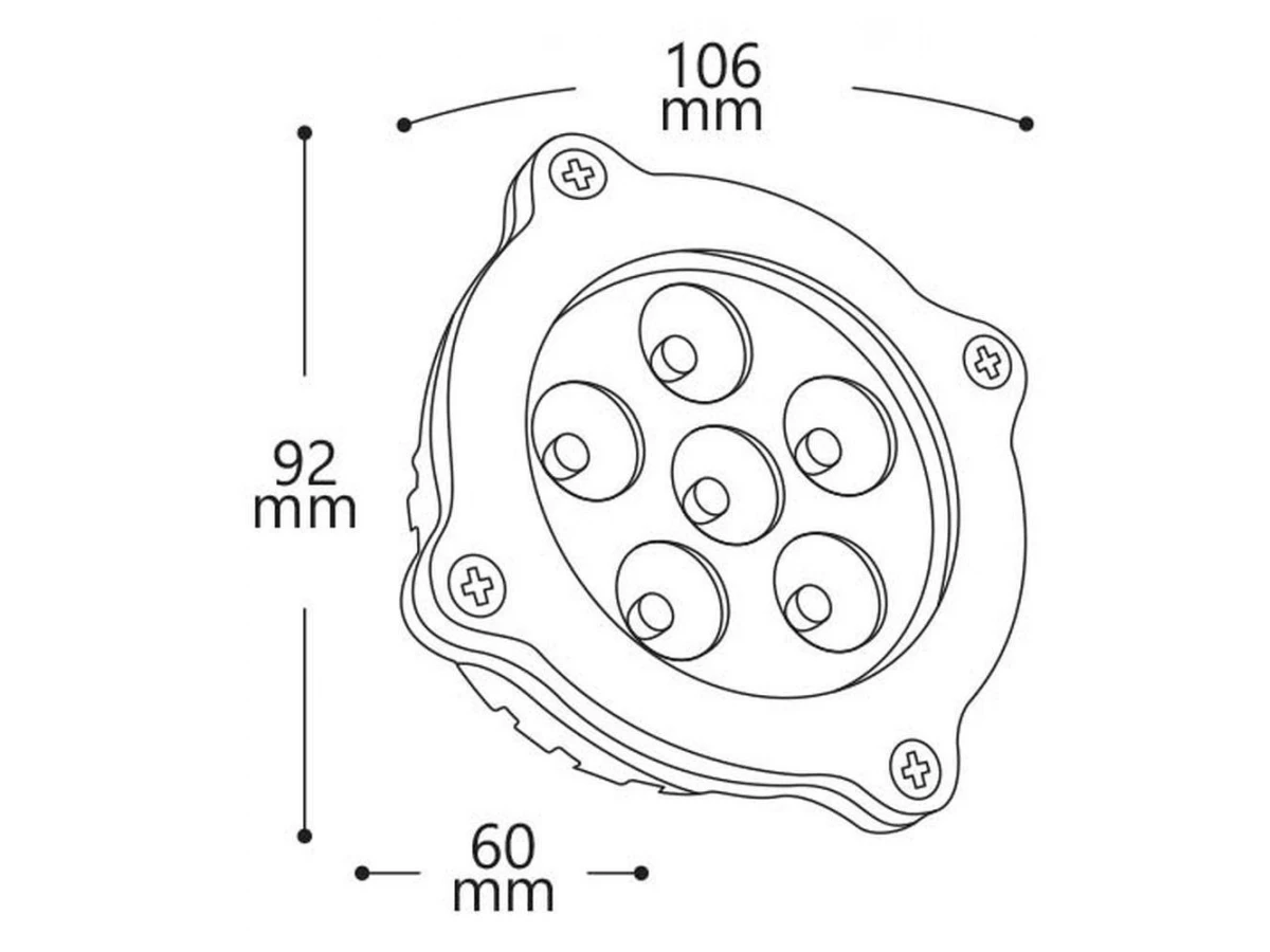 Подводный светильник LL-873, светодиодный, 6 LED, размер 92*106мм, длина провода 0,20м, материал корпуса алюминий, цвет сечения RGB, напряжение AC12В, мощность 7,7Вт, класс защиты от поражения током - 3, степень пылевлагозащиты IP68, срок службы 50000 часов.