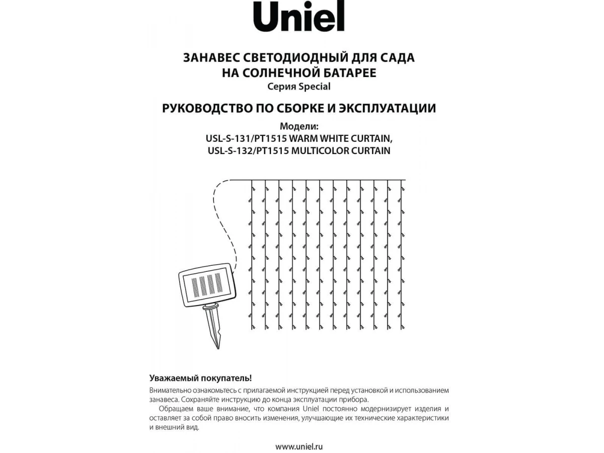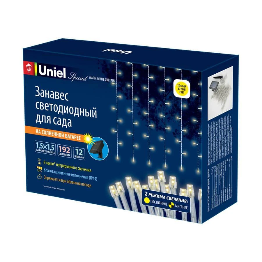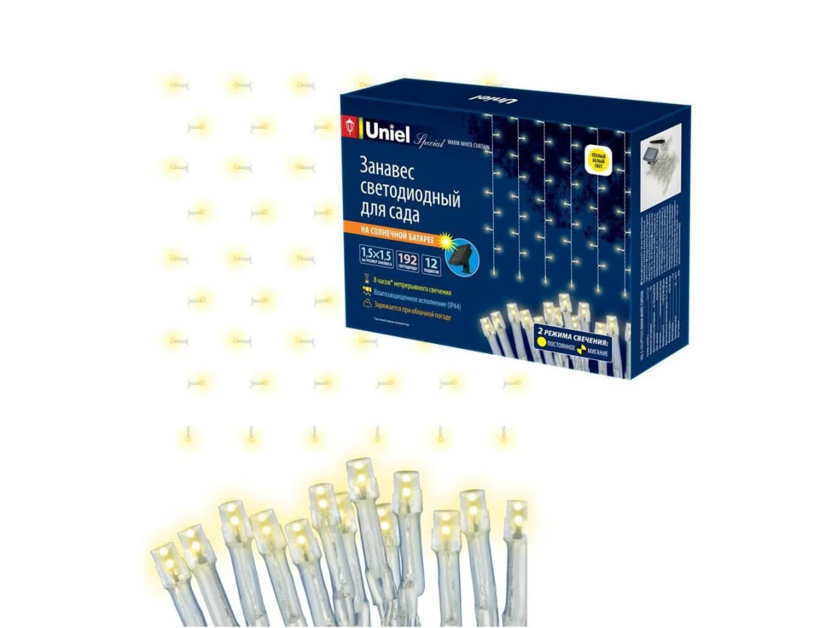 Гирлянда на солнечных батареях Uniel Занавес USL-S-131/PT1515 Warm White Curtain UL-00006538