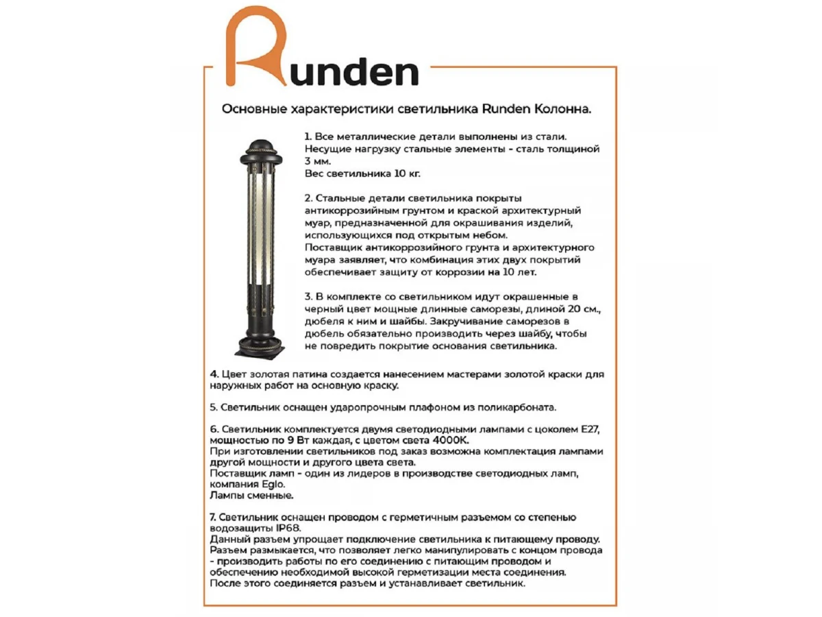 Уличный светильник Runden Колонна V10111