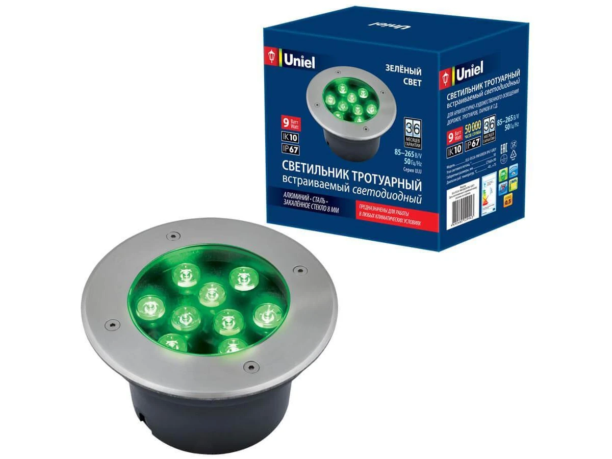 Ландшафтный светодиодный светильник (UL-00006825) Uniel ULU-B12A-9W/Green IP67 Grey